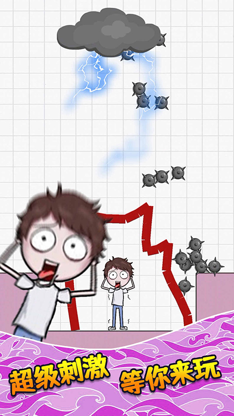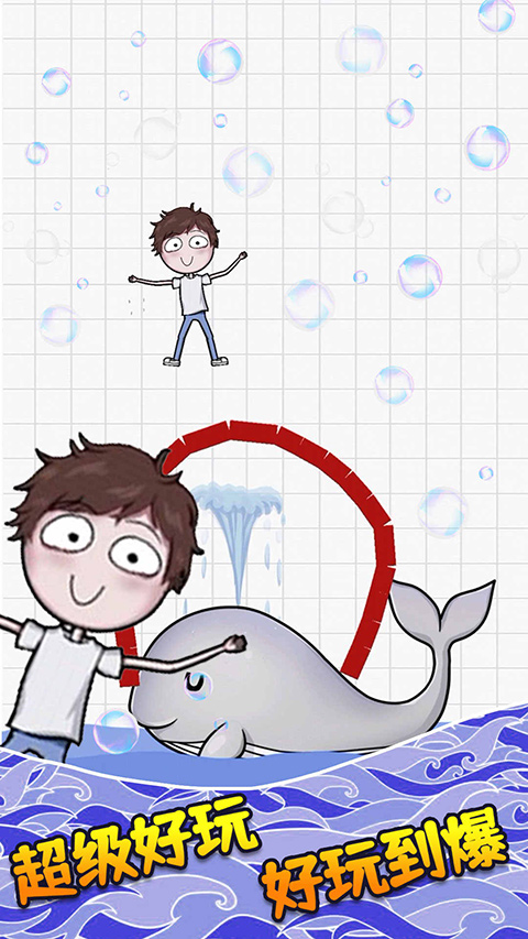 6、进入第五关会有很多东西从上面掉落下来,我们画的毛线需要将整个人物完全罩住,游戏中还有许多关卡等待玩家挑战,以上就是画个毛线营救游戏的玩法了。