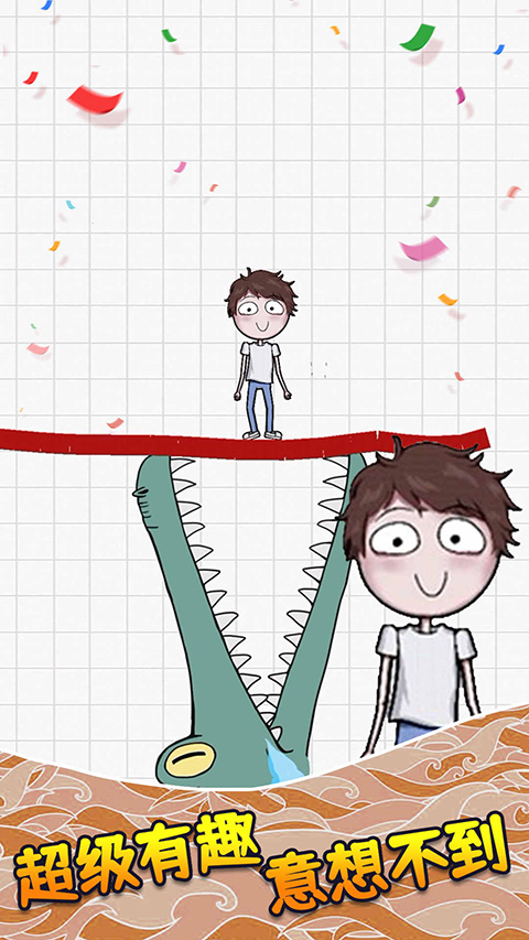 2、进入第一关,这关很简单,从人物的头上画一条毛线即可,