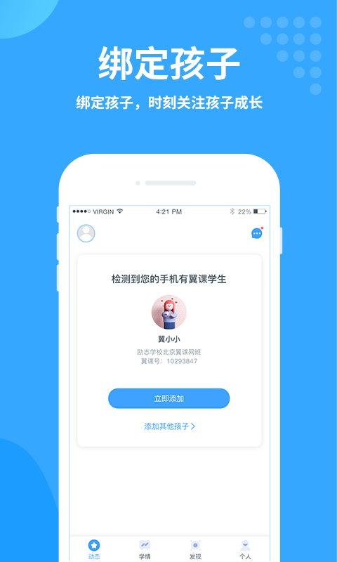 动态为家长呈现孩子在翼课网上的学习过程和成果,让家长一起分享孩子进步的喜悦。