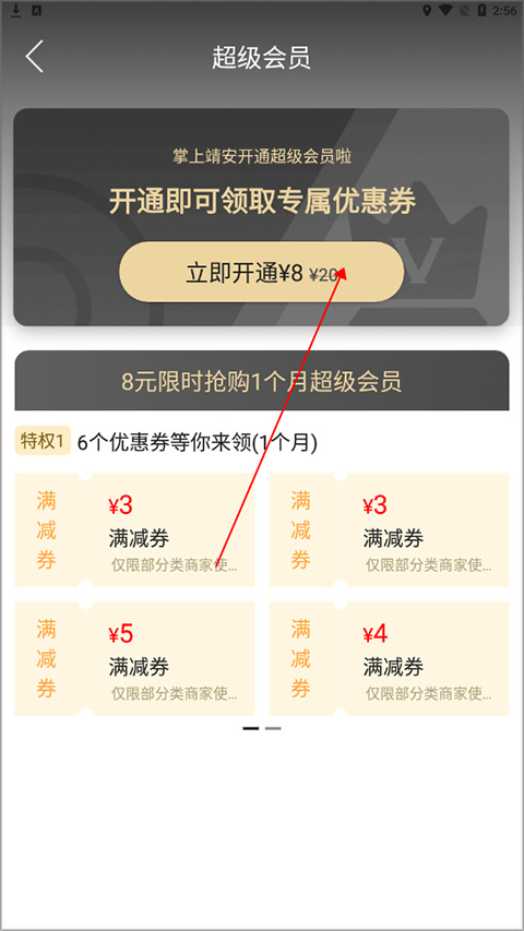 1、进入掌上靖安app首页后,点击【我的】。进入我的界面,点击【超级会员】。