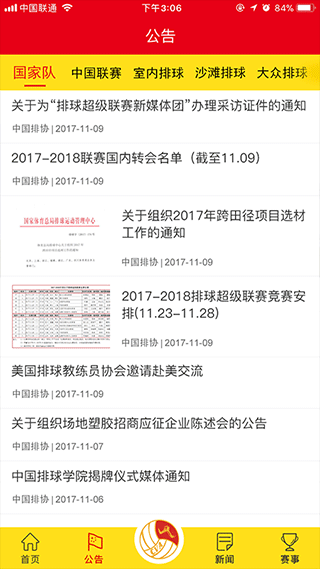 3、点击新闻可以查看关于排球的一些相关新闻。
