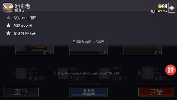 4、在废弃的汽车之间转弯,开过僵尸,当僵尸靠近时以最快的速度射击,去车库升级你的车和枪,并保持速度。