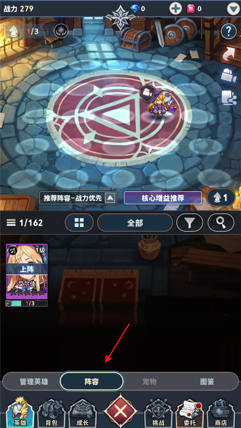 游戏还贴心地提供了两种推荐阵容功能,一个是按照战斗力排序,另一个是优先考虑增益效果,这样玩家就可以轻松找到适合自己的战斗队伍了。另外,每天登录还能拿到福利红钻,加速养成,提升效率,简直不要太方便!