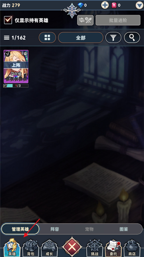 1、点击主界面【英雄】按钮;