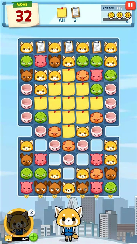 3、任务以消除的模式进行,玩家通过消除里面的动物方块获得星星;
