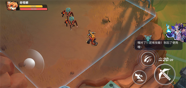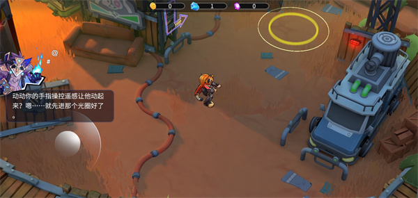 3、进入游戏界面,会有npc进行新手指引,练习操控需要摇杆;