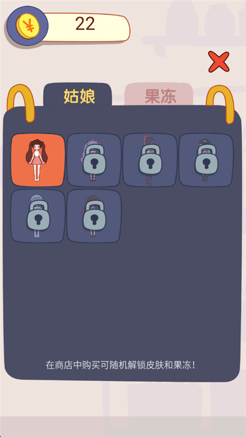 用收集的金币在果冻店买入果冻,获得新的女孩形象,达成成就解锁新的果冻背景,体验收集的乐趣吧。