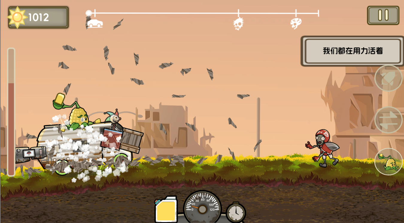 1、将你熟悉的植物装上战车!豌豆、火焰、玉米炮等多种“植物武器”随意搭配,打造个性化战斗配置。