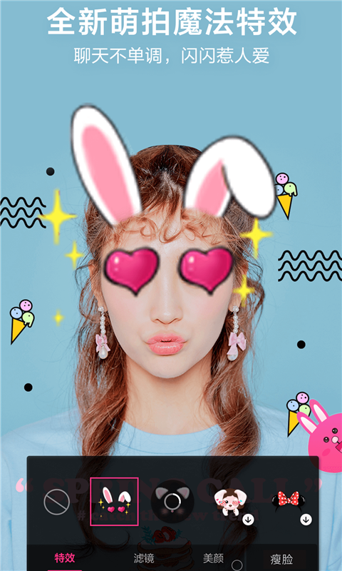 4、点击右侧美颜小挂件,数十款特效随心选。