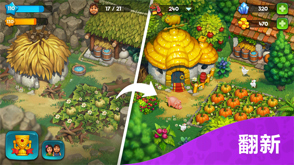 游戏里有很多有意思的玩法,比如建造各种建筑,从简单的房子到高级的剧院,甚至可以发展出一个繁荣的小镇。你可以根据自己的喜好布置村庄,或者按照任务要求有针对性地建设。最让我喜欢的是它的自由度很高,玩家可以根据策略选择发展方向,比如侧重资源采集还是军事防御。