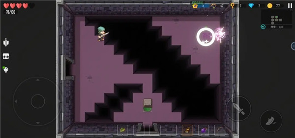 3、您在游戏中可使用【剑、矛、斧、弓、杖、法器、暗器】等多种武器消灭不同特性的魔物,武器在游戏中可随时切换使用(不需要进行装备),点哪个武器就用哪个,既可以是魔法师也可以是战士。
