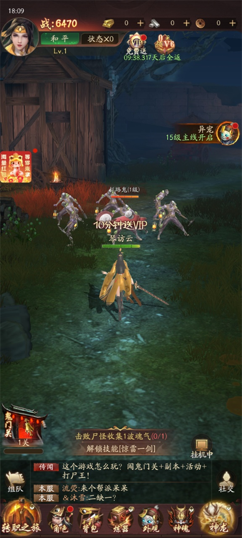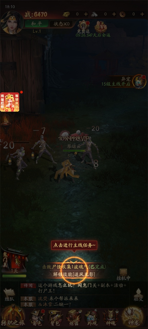 2、游戏开始直接开始战斗,可以打点小怪,升升级提升战力,随后完成屏幕下方的任务。