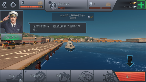 1、屏幕左下角的操控盘可以控制舰船的移动方向,前减和后退是按照档位机制的,屏幕右侧可以控制视角的移动,空中有时会掉落弹药、维修等道具。