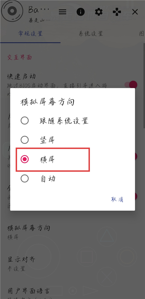 6、最后点击右上角×图标回到游戏中,即显示为横屏。