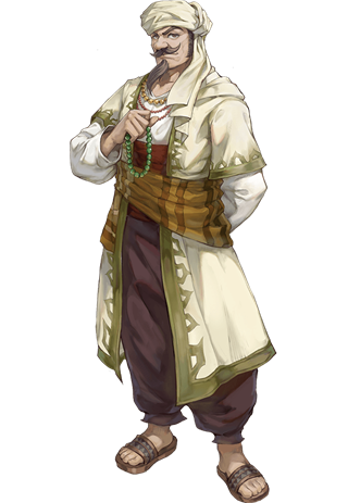 北非沿岸·阿尔塔戈出身的贸易商人。自从8年前漂流至此,他便强硬而精力充沛地带领着人们,将利摩日改造成了令人耳目一新的(欧罗巴风格的)街景虽然他是推动森林采伐和破坏遗迹、导致亚人与欧洲人关系紧张的罪魁祸首,但并非本性邪恶之人。