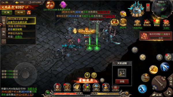 2、在任务地图自动挂机战斗,有几率获得首爆装备;