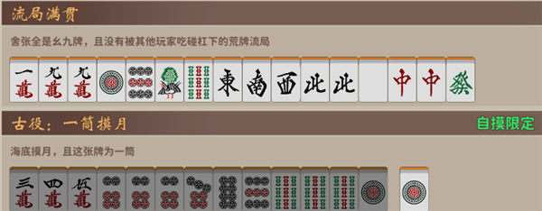 9、如果我们手牌有四张完全相同的牌,我们就可以进行【杠】,这样杠被称为暗杠。选择杠牌后,这四张牌放在一边并再摸张牌。当然,还要再打出一张不要的手牌。