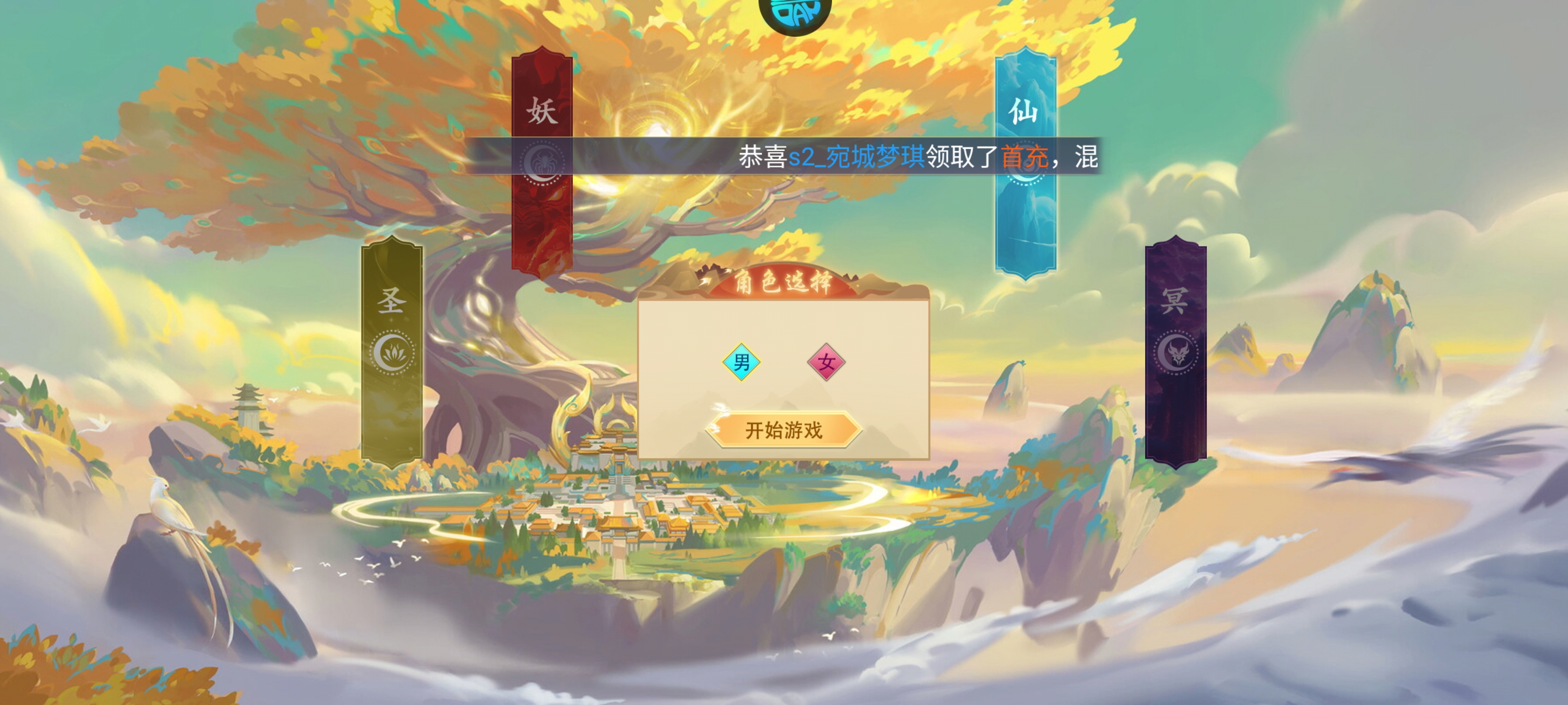 1、游戏开局,在四大阵营中选择一方加入,随后选择角色性别进入游戏。