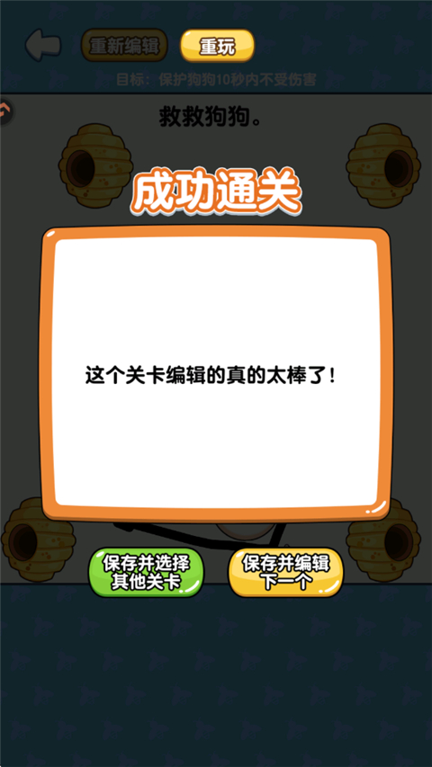 游戏里有上百个关卡,难度逐渐递增,还有自定义关卡的功能,可以自己设计地图添加各种元素,玩起来很有创意感。操作很简单,就是画线保护狗狗10秒不挨蜇,特别适合用来打发碎片时间。画面风格也很治愈,卡通化的狗狗和蜜蜂让整个游戏看起来轻松又有趣。