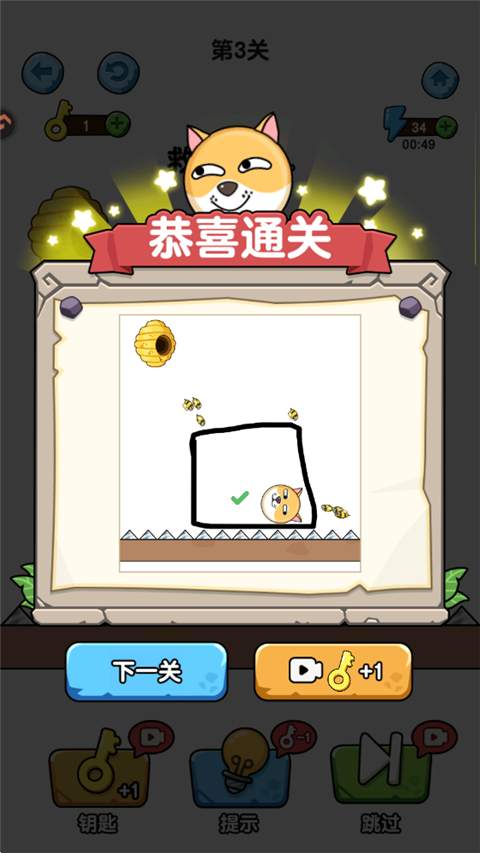玩家需要通过画线来阻挡蜜蜂,保护狗狗不被叮咬。这种新颖的玩法不仅考验玩家的逻辑思维,还增加了游戏的趣味性。