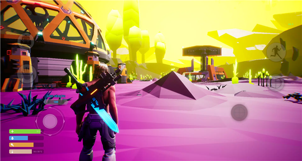 2、在荒凉的行星上,玩家需要面对极端天气和危险的外星生物,利用装备的盔甲和武器保护自己。进行资源采集,获取食物、材料和技术升级所需的元素。