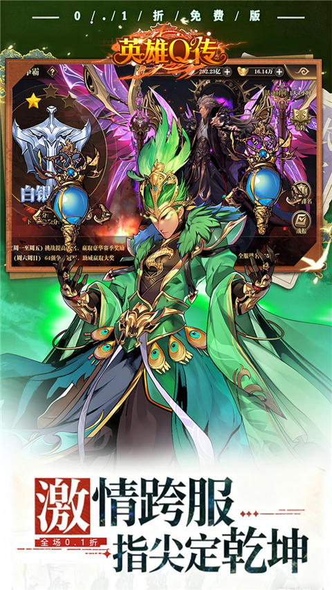 PS:英雄Q传(0.1折每天送1万代金),内置0.1折扣充值福利,开局即送黑黑金时装和黑金神将令,每天登录可领10000代金券,还有大量抽卡道具、道具免费领取!