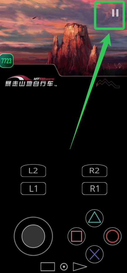 1、刚下载游戏时进去会变成竖屏显示,画面在上方,虚拟按键在下方,点击右上角按钮。