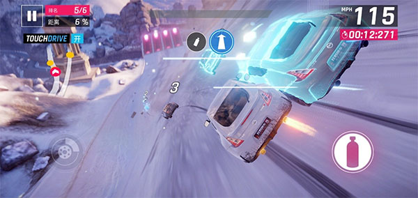如果想要体验更真实的漂移和转向效果,当然不能错过重力感应模式。重力感应模式操作与智能驾驶一样,触摸左边屏幕漂移,触摸右边激活氮气,不过转向就变成了倾斜屏幕来控制。