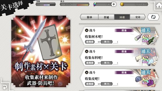 素材本的道具图标都有,可以直观看到能掉些什么,基本上做4星装备都需要这些道具
