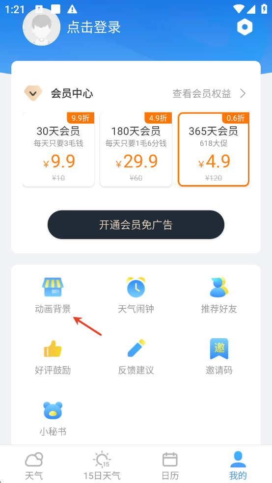 1、在我的界面点击动画背景。
