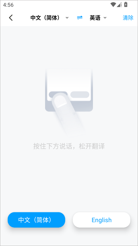 3、长按话筒开始说话,松开之后就会翻译出来