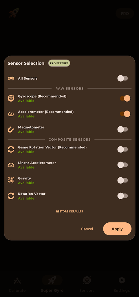 Super Gyro是一款专为移动游戏玩家设计的性能优化应用,核心目标是解锁设备陀螺仪传感器的全部潜力,以确保在竞技类游戏中获得极致的精度和响应速度。该应用通过提供高精度的陀螺仪和加速度计校准功能,有效地解决了传感器数据不准确或延迟的问题,让玩家的微小手部动作能够即时、准确地转换为游戏中的操作。此外,Super Gyro还融入了独特的算法,用于减轻由运动导致的眩晕或动晕症,从而显著提升了玩家在长时间VR、AR或高强度射击游戏中的舒适度和沉浸感,有需要的用户可以在本站免费下载使用。