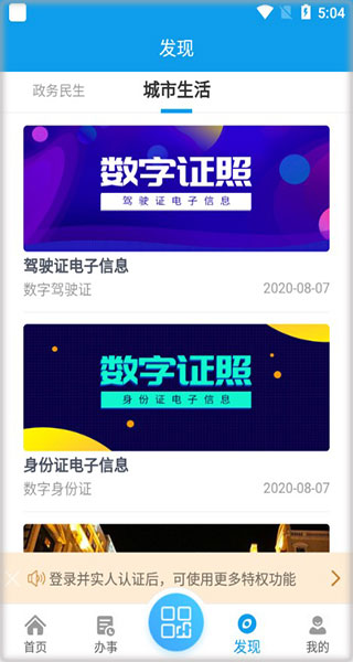 4、我的证件,多种身份验证,保护每一个用户的隐私,在线申请电子证件。