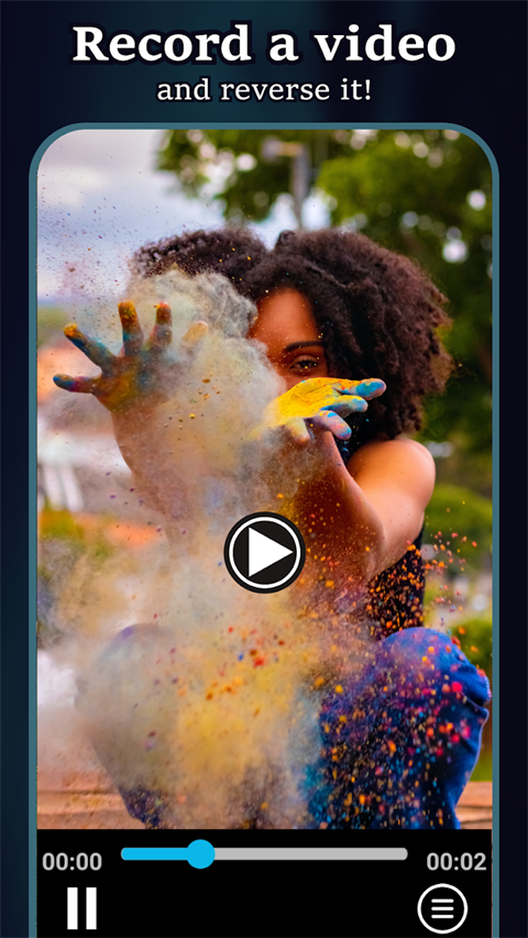 首先录一段某人或你自己的视频:步行、喝橙汁、讲话或任何你能想到的创意!按开始!应用即可倒放你的视频:你会看见人们倒着走,你的朋友将橙汁吐出来、人们倒着说话等等!