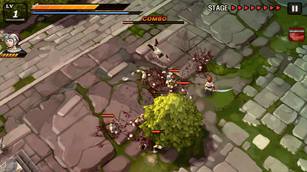 5、吸血:如果手指点在屏幕上向某一方向快速滑动,而且该方向有敌人(非BOSS),角色就会发动绝杀技,瞬间杀死该名敌人并回复一定的血量,会消耗大量耐力。