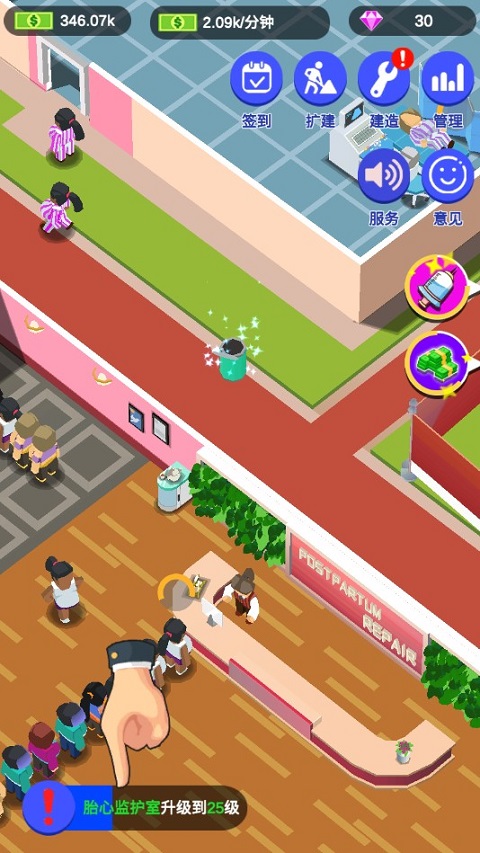 游戏中,玩家需关注宝妈的意见反馈,这些反馈有助于完善医院设施和服务,吸引更多客人。医院内可以建设多种功能室,如胎心监护室、产房、餐厅等,每个房间都有不同的功能属性。提升品牌形象和宣传也是关键,这样才能获得持续性收入。