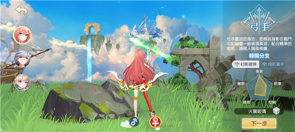 3、进入游戏之后选择角色、输入角色名称、选择性别,点击“下一步”,不过这边角色分为“弓手”、“战士”、“法师”。