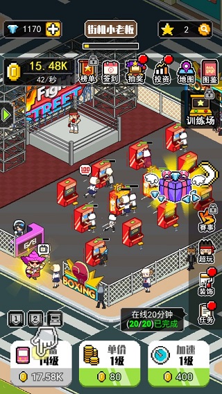 2、让你的魔性街机店开业,种类繁多的项目应有尽有,回到风靡的街机时代。