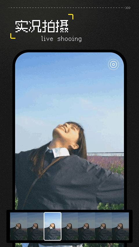 2、拍摄时选择心仪的胶片滤镜,实时预览复古效果,轻点快门定格瞬间。