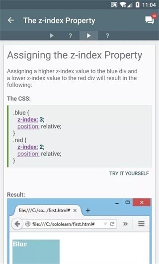 这里以学习 CSS 的“z-index”属性为例。这里介绍了“z-index”的概念,我们可以知道“z-index”是定义元素的先后顺序的。