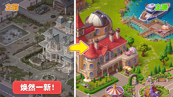 时尚改造大师中文版是一款非常好玩的消除益智游戏,采用卡通的游戏画风,可爱的角色形象,多样的玩法模式,消除的玩法,给玩家带来全新的室内装修和庄园改造的体验。