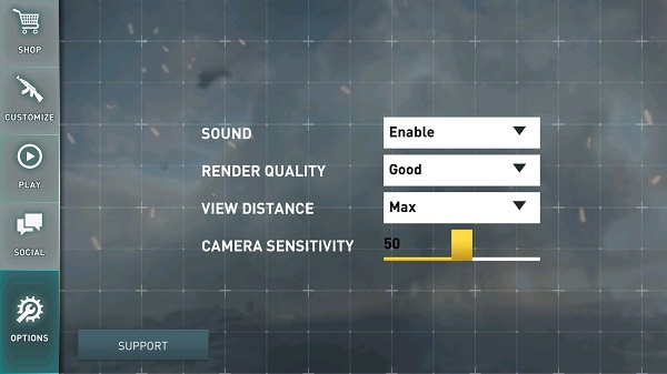可以更改声音的大小,画质渲染质量、视距以及灵敏度。
