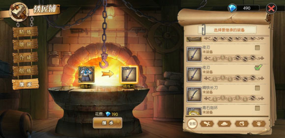 (友情提示:优先选择英雄装,而且同等级的装备不是相差特别大属性不要频繁继承,蓝钻伤不起!我也说过后面装备差异主要取决于宝石属性,没必要频繁继承浪费蓝钻。蓝钻多留给活动副本用)