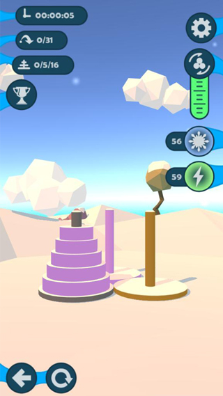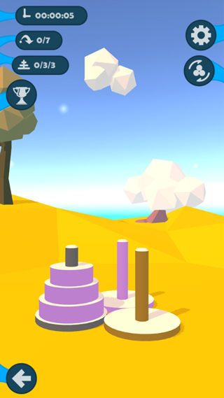 汉诺塔是一款采用3D建模精心制作而成的休闲益智类游戏,游戏中玩家需要将杆上的圆柱根据颜色来依次放在正确的位置,期间你会利用到其他两杆来作为移动辅助,并依据规则依次按照从大到小的顺序叠加,在这个过程中玩家可以自由变换视角用不同的角度来观察并完成这项挑战,丰富的关卡设定,喜欢的朋友就来下载挑战自己一下吧。