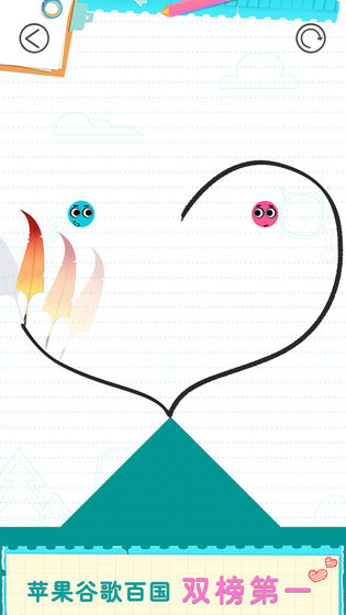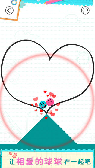 恋爱球球安卓版是一款画风简约、玩法轻松有趣的益智闯关游戏,英文名叫做Love Balls。游戏的核心玩法是通过简单地画线让两个小球碰撞,擦出“恋爱火花”。听起来有点浪漫吧?操作很简单,就是在游戏界面画几条线,引导小球移动,避免它们撞到墙壁或者掉下去。不过要三星通关还得注意连线的长度和角度。
