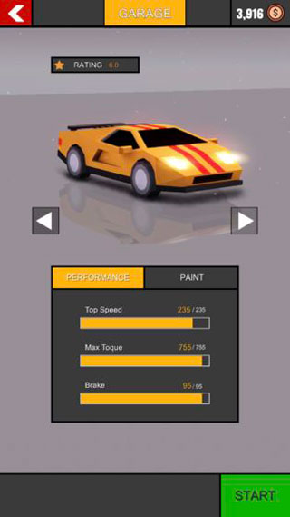 3、使用金币可以购买更多的赛车来使用,体验全新的赛车竞速游戏玩法。