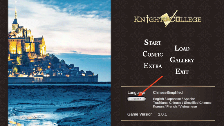 1、在本站下载安装好骑士学院手机版,运行游戏并进入,点击Switch;
