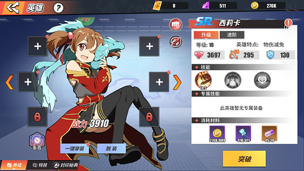 4、英雄突破不仅可提升英雄基础属性,还可解锁或升级英雄技能。