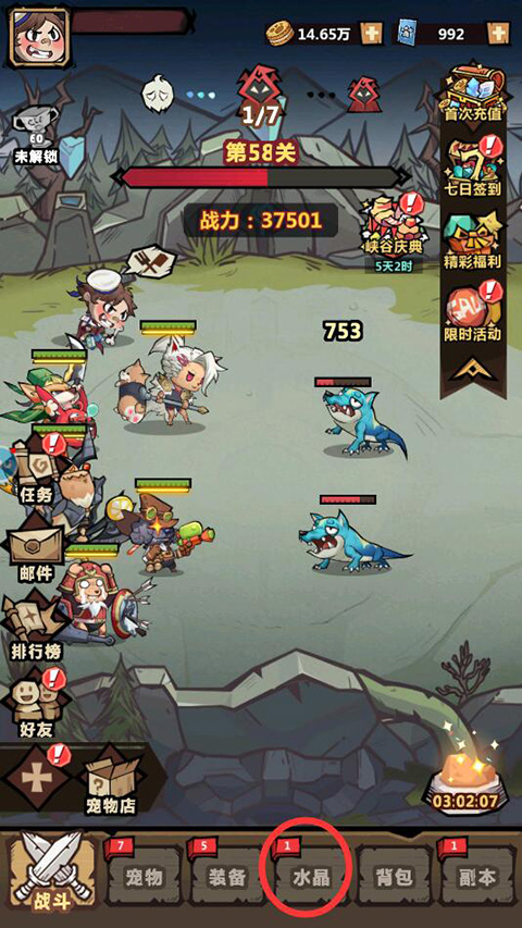 5、按照上述步骤操作就可以轻松提升整体战斗力了,升级和强化用到的材料和道具我们可以通过关卡以及副本挑战获取