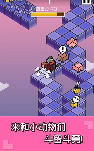 这款游戏叫《乘胜追鸡》,听起来有点魔性,玩法挺简单的,就是通过左右移动来操控主角在方块路上行走,吃掉小动物就能加分和延长游戏时间。最有趣的是暴走模式,开启后会突然出现很多小动物,感觉像是开了外挂一样爽快!每次挑战的关卡都是随机生成的,不会重复,玩起来挺有新鲜感。